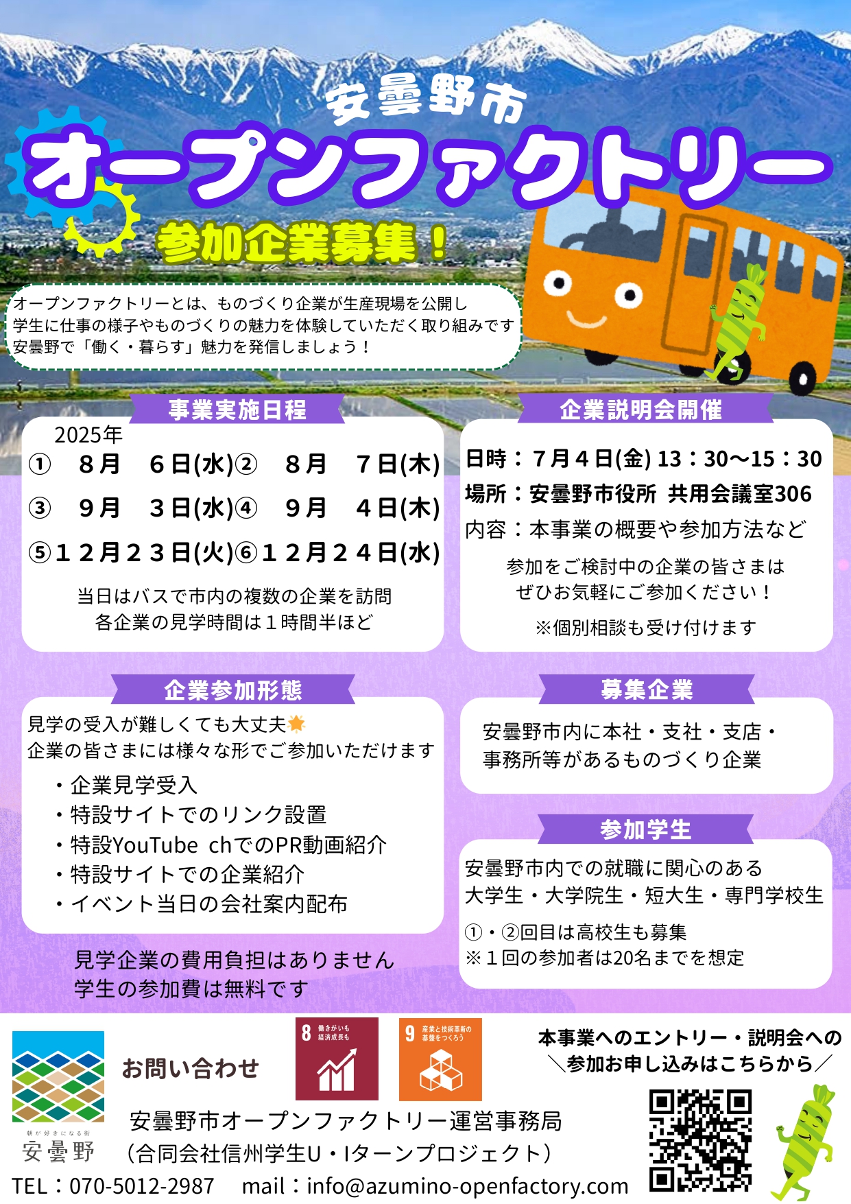 安曇野市オープンファクトリー事業への協力を希望する企業様は、こちらからお申し込みください。